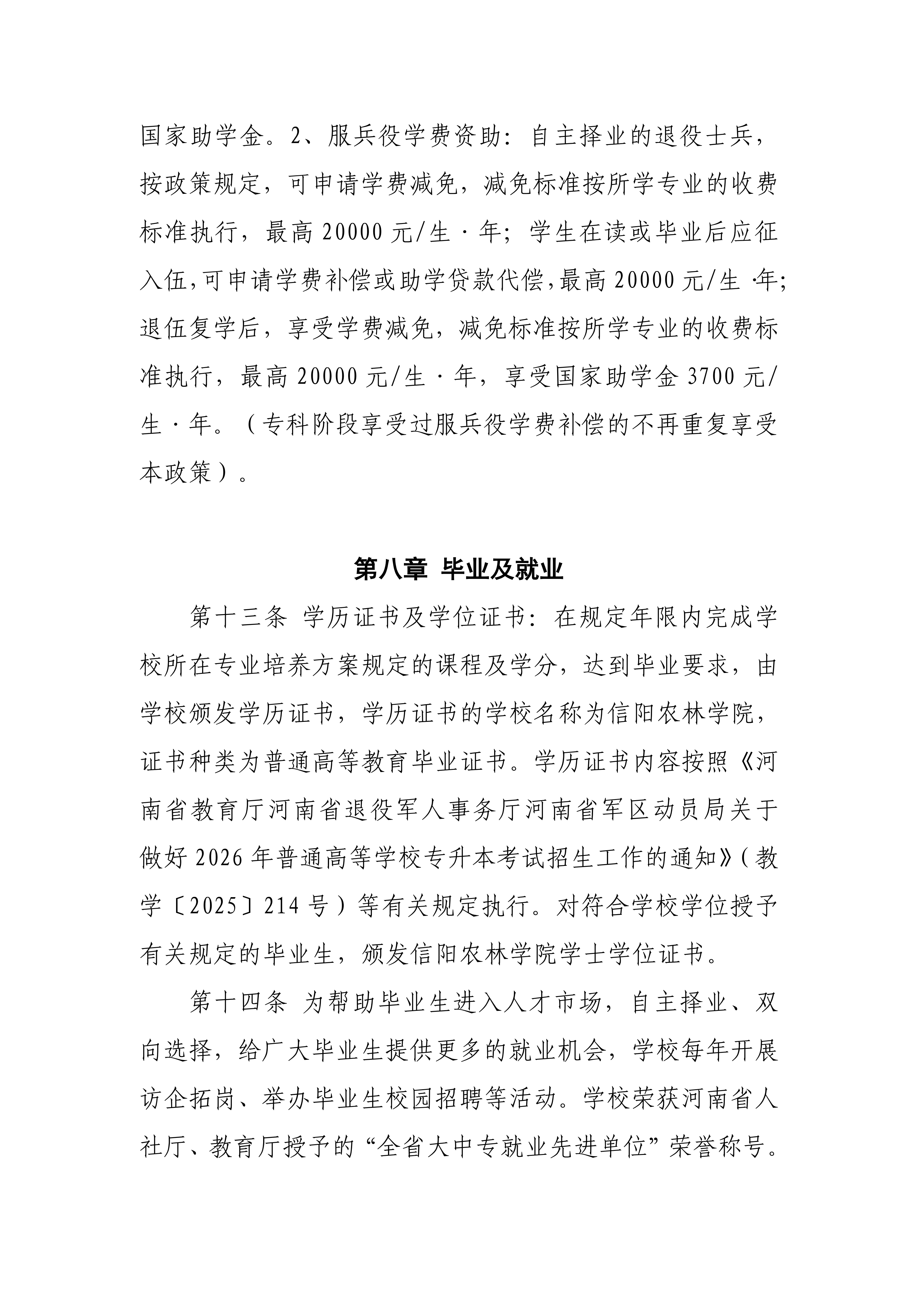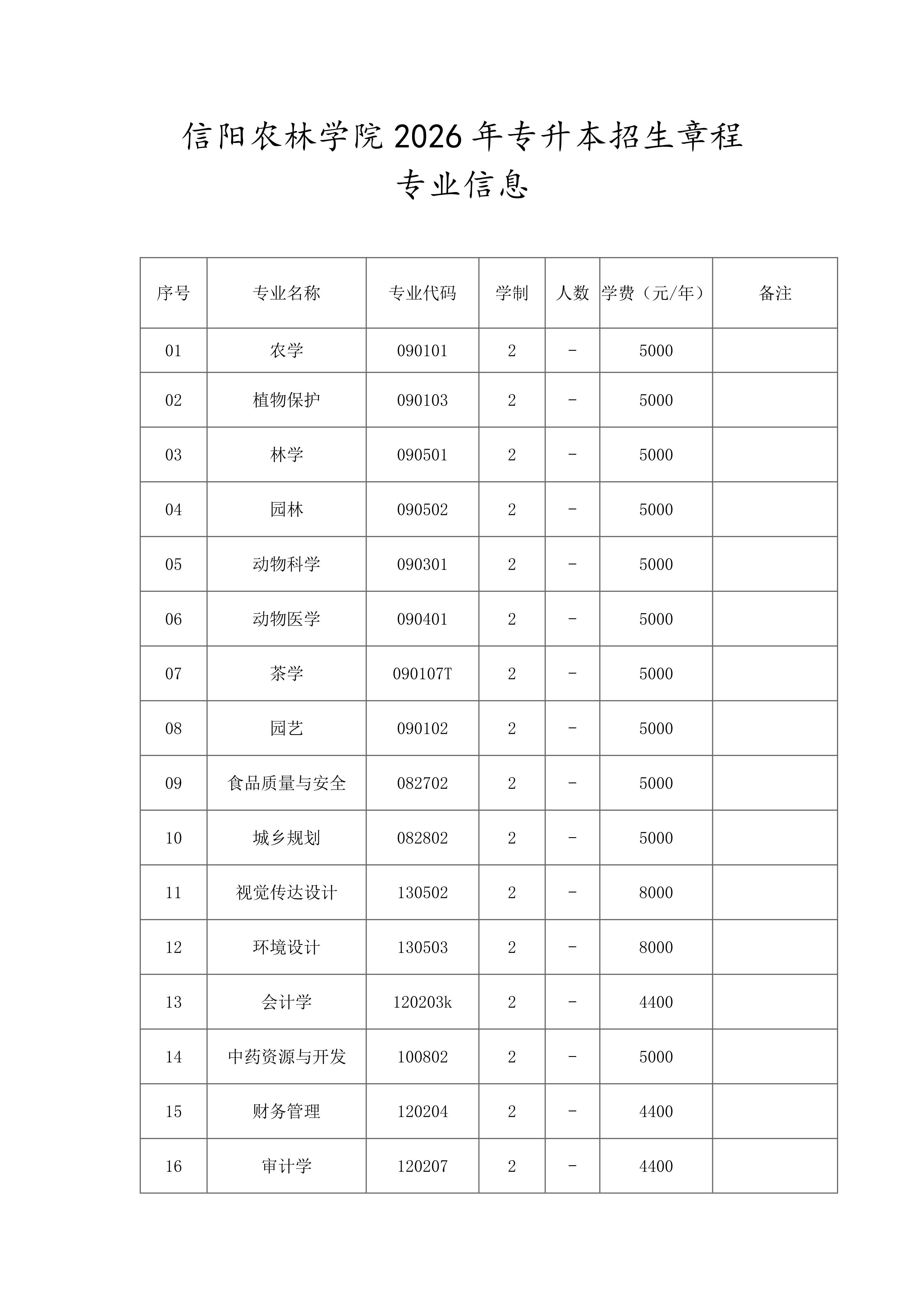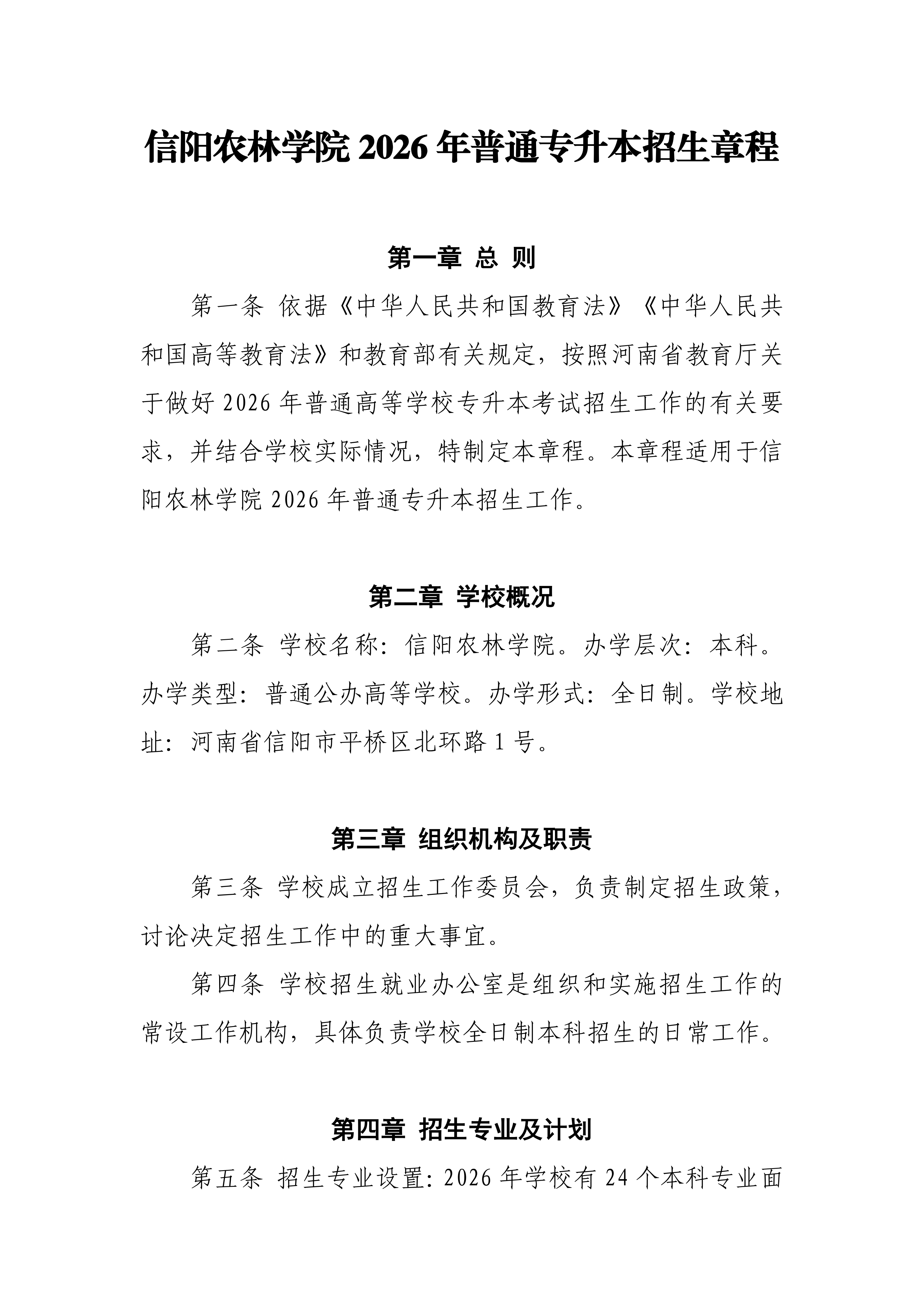 信阳农林学院2026年普通专升本招生章程